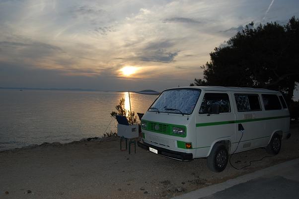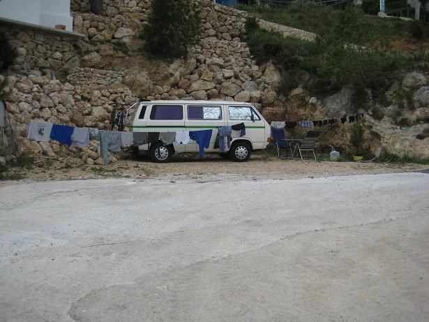 Nach einer windigen Nacht wurde es auch am nächsten Tag nicht viel besser. Nachdem wir kurz den Hauptort Cres besuchten, fuhren wir weiter auf die Insel Losinj, auf welcher uns wunderschönes Wetter erwartete. Kein Wunder, da die Insel Losinj mit 300 Sonnentagen im Jahr zu den Sonnigsten Plätzen Europas gehört. Wir ergatterten einen Stellplatz direkt am Meer, den wir uns für drei Nächte gemütlich einrichteten.