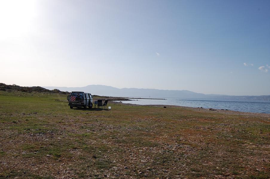 Am Dienstag 3. Mai haben wir uns spontan entschieden noch die Inseln Cres und Losinj zu bereisen. Nachdem wir uns auf dem Weg zum Hafen noch ein wenig verfahren hatten, verpassten wir die Fähre um genau fünf Minuten. Schön war der Moment, als die Kassiererin uns mitteilte, dass die nächste Fähre erst in drei Stunden fahren würde. Die Überfahrt dauerte dann nur gerade 20 Minuten von Brestova nach Porozina. In der Nähe von Cres, dem Hauptort der Insel Cres, fanden wir einen Campingplatz, welcher nur 2 km vom Ort entfernt lag.