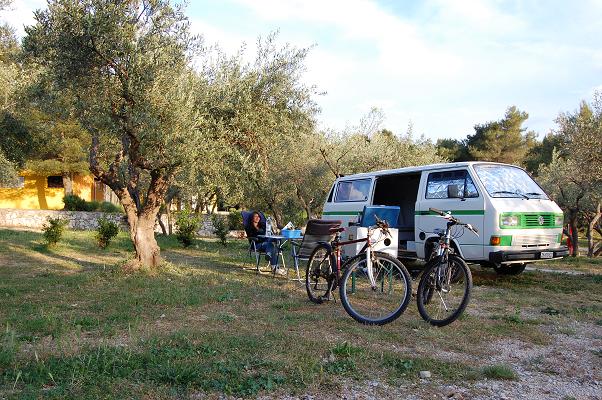 Am zweiten Tag fuhren wir mit dem Fahrrad ziellos der Küste entlang. Nach etwa einer Stunde über Stock und Stein kamen wir per Zufallwieder nach Mali Losinj. Da gönnten wir uns noch einen Coup und dann ging es wieder zurück zum Campingplatz.