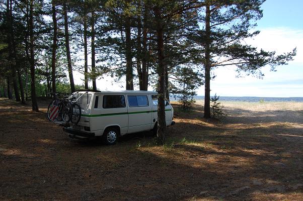 Nachdem wir in Torsö Abschied genommen haben, ging es mit unserem VW-Bus weiter in Richtung Tived Nationalpark. Am Nachmittag relaxten wir ein bisschen am Strand und später rollten wir nur ca. zwei Kilometer zurück um uns an einem See für die Nacht einzurichten.